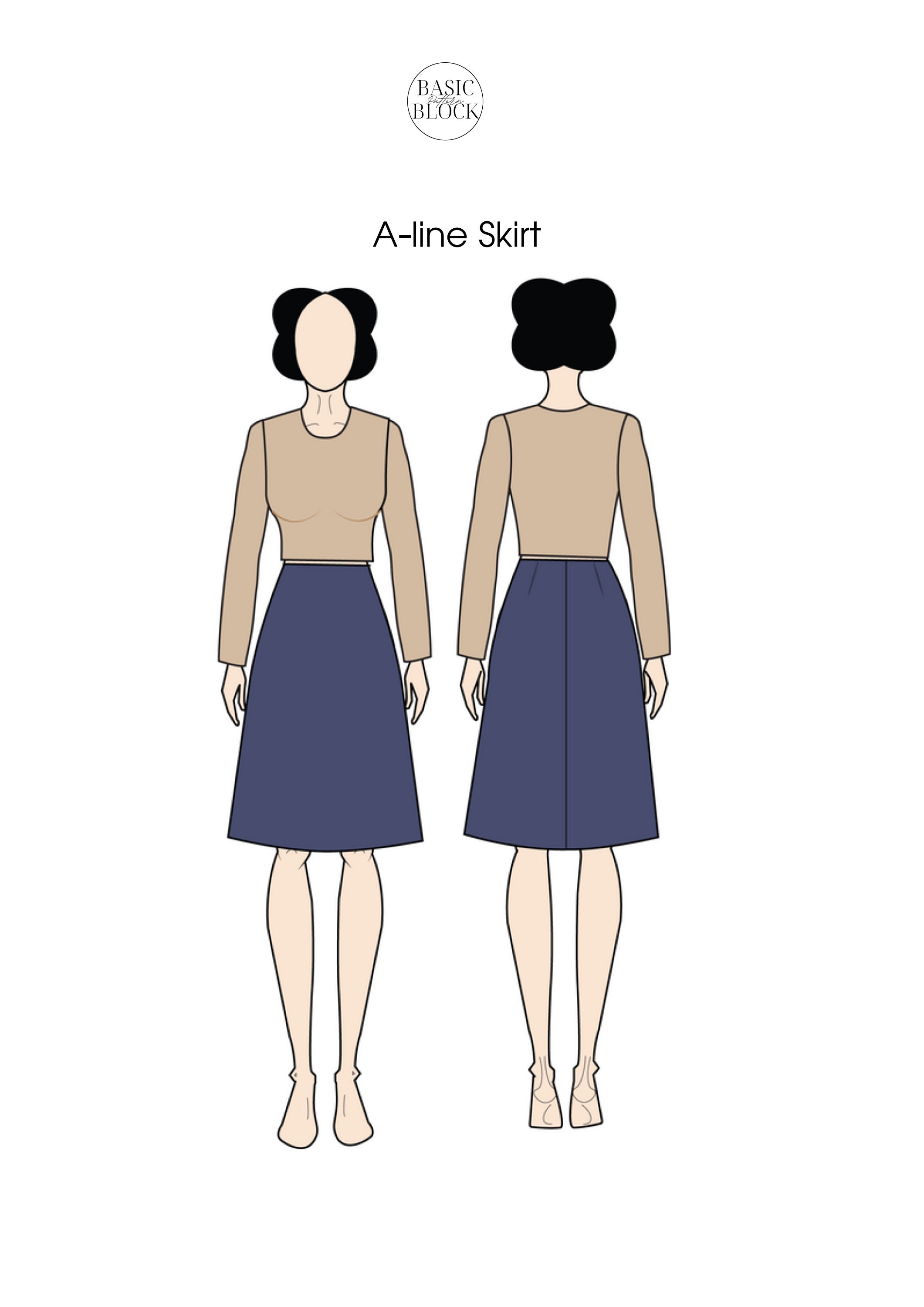 High Waist Skirt Basic Pattern Block A Line Skirt Sizes Etsy